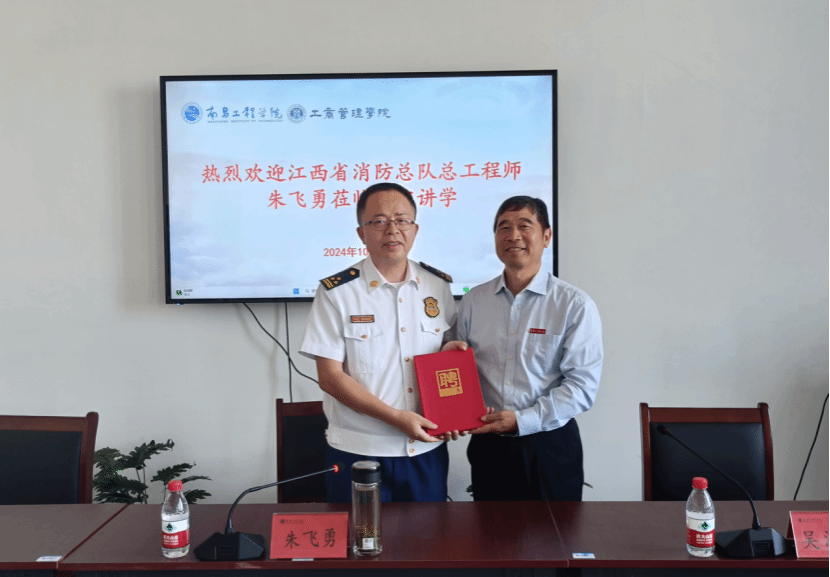 在聘任仪式上,吴泽俊为朱飞勇颁发了客座教授聘书,并对朱飞勇加入学院表示热烈欢迎,感谢他对学校建设发展的关心和支持。胡杨成表示,朱教授的加入将为学校应急管理专业建设注入新的动力,对提升教师队伍水平和人才培养质量具有重要意义,学院将以此为契机,进一步加强学科建设,凝练办学特色,培养更多具有家国情怀和全球视野的高素质应急管理人才。