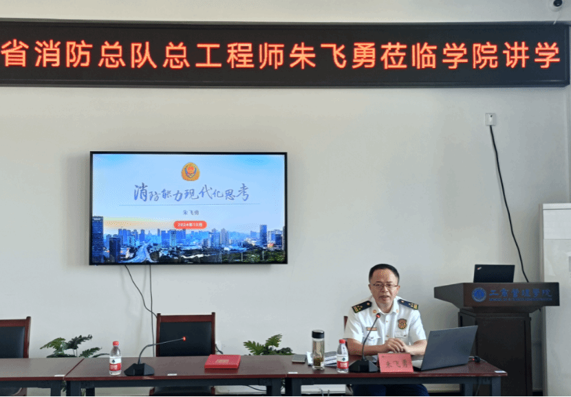随后,朱飞勇教授为师生们作了题为《消防能力现代化思考》的专题学术讲座。他从消防能力现代化的背景、现状、挑战和发展方向等方面进行了深入阐述,内容丰富,见解独到。讲座引发了在场师生的积极反响,现场气氛热烈。
