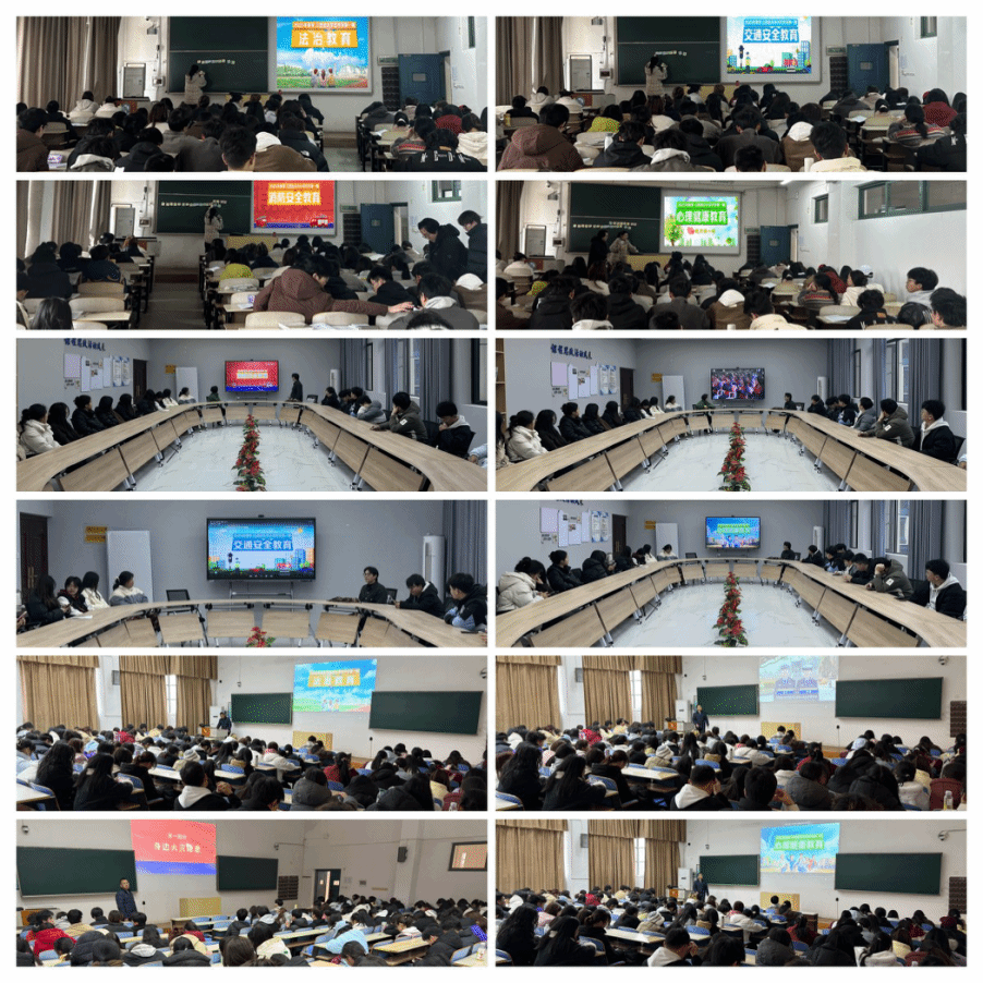 会上,各班级班主任立足高校春季开学安全防范风险,借助江西智慧教育平台“开学第一课”专栏,围绕消防安全、心理健康教育、交通安全、食品安全、校舍安全、培训机构安全和防踩踏、防欺凌、防诈骗、防溺水、防自然灾害、禁毒等方面内容,开展了扎实有效的安全教育。通过生动的案例、直观的图片和视频资料,向学生们深入浅出地讲解各类安全知识。