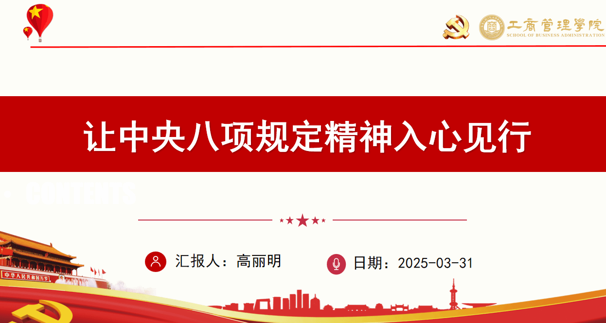 高丽明带领大家共同学习了中央八项规定和中共中央政治局贯彻落实中央八项规定实施细则,并从贯彻中央八项规定的重要意义和让中央八项规定精神入心见行两个方面进行了深入阐述。他强调,全体党员要提高政治站位,坚定理想信念,坚决抵制“四风”,教师党员要坚守育人初心,学生党员要树立正确的价值观、义利观,永葆党员的先进性和纯洁性。