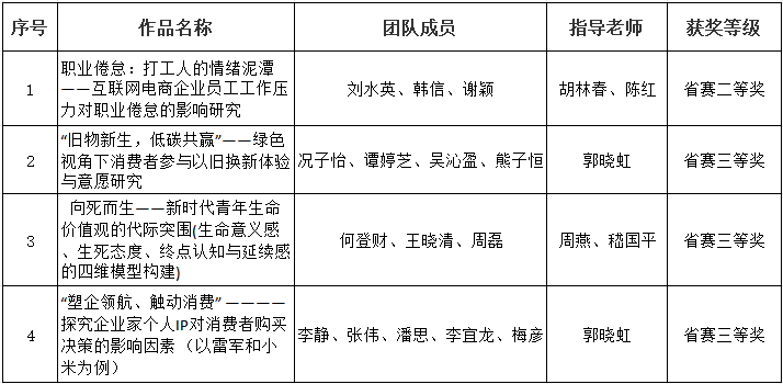 表1:研究生组获奖名单