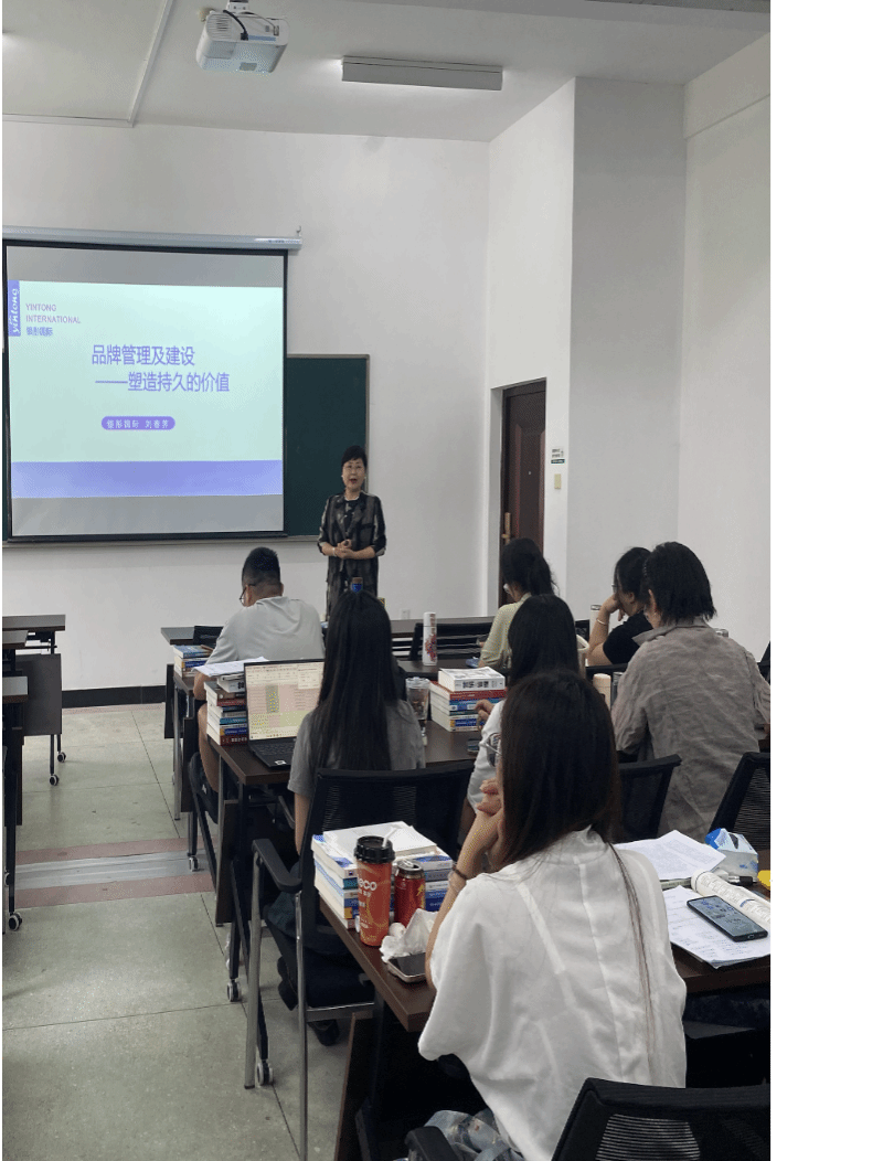 讲座伊始,刘春荠董事长便以银彤国际集团27年的发展历程为主线,将《品牌管理》理论与实践紧密结合,深入浅出地展开讲解。她明确指出,在当前市场竞争异常激烈的环境下,品牌远不止是一个简单的标识符号,其本质是企业核心价值的具象化呈现,更是企业与消费者之间建立情感连接的关键桥梁。通过展示一系列生动且详实的案例,刘春荠董事长对品牌管理中的核心环节,包括品牌定位、传播、维护等,进行了细致入微的剖析。她着重强调了精准品牌定位的重要性,认为只有精准把握消费者的真实需求,品牌才能在市场的波涛汹涌中站稳脚跟,进而构筑起难以复制的竞争壁垒。刘董事长凭借其丰富的行业经验和深刻见解,为同学们拓展了品牌管理的新视野。