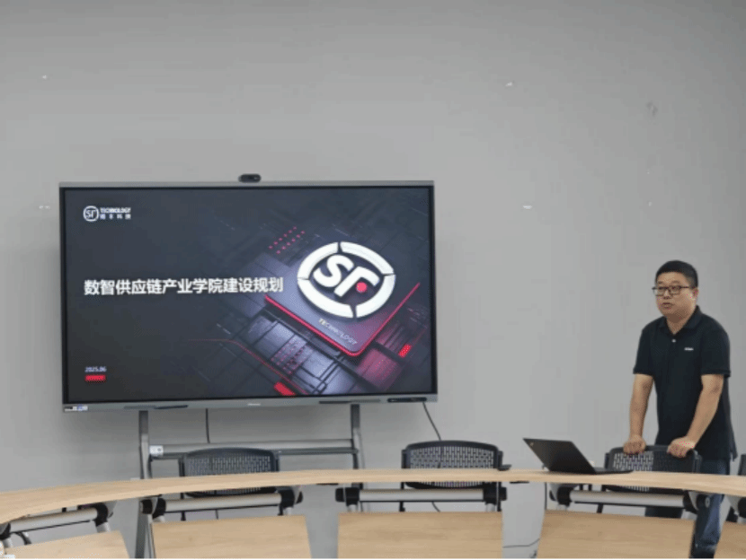 双方就如何将企业实践与理论教学紧密结合展开了热烈讨论。谢军老师介绍了目前供应链管理专业的课程设置情况,特别提到《智慧供应链管理》等核心课程,表达了将顺丰的企业管理思想、供应链管理优势以及顺丰科技的先进技术融入课程与教材建设的需求和意愿。