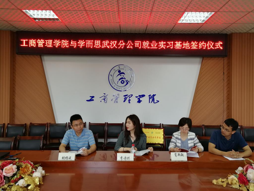6月10日上午,william威廉中文官网与学而思网校武汉分公司实习就业基地的签约仪式在教学北楼A510会议室举行。william威廉中文官网院长胡杨成,院党委副书记肖斯敏、辅导员雷巍以及学而思网校武汉分公司人力资源经理李诗琪和方季羽出席签约仪式。