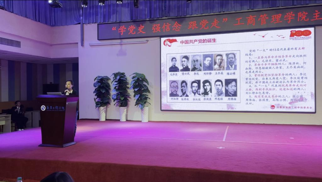 课堂上,朱老师以“不忘初心,勇立潮头,红船再出发”为主题给学生们讲述了中国共产党的诞生时间、地点,参与党诞生的主要人物和历史意义。结合中国革命成功、建设发展成效背后的党史故事,再现了中国共产党成立100年来波澜壮阔的光辉历程。从决胜千里的战争场面,到日新月异的时代华章,让同学们能看到的不仅仅是民族艰苦奋斗的历史,更感悟到奋发向上的时代精神,看到美好的未来。