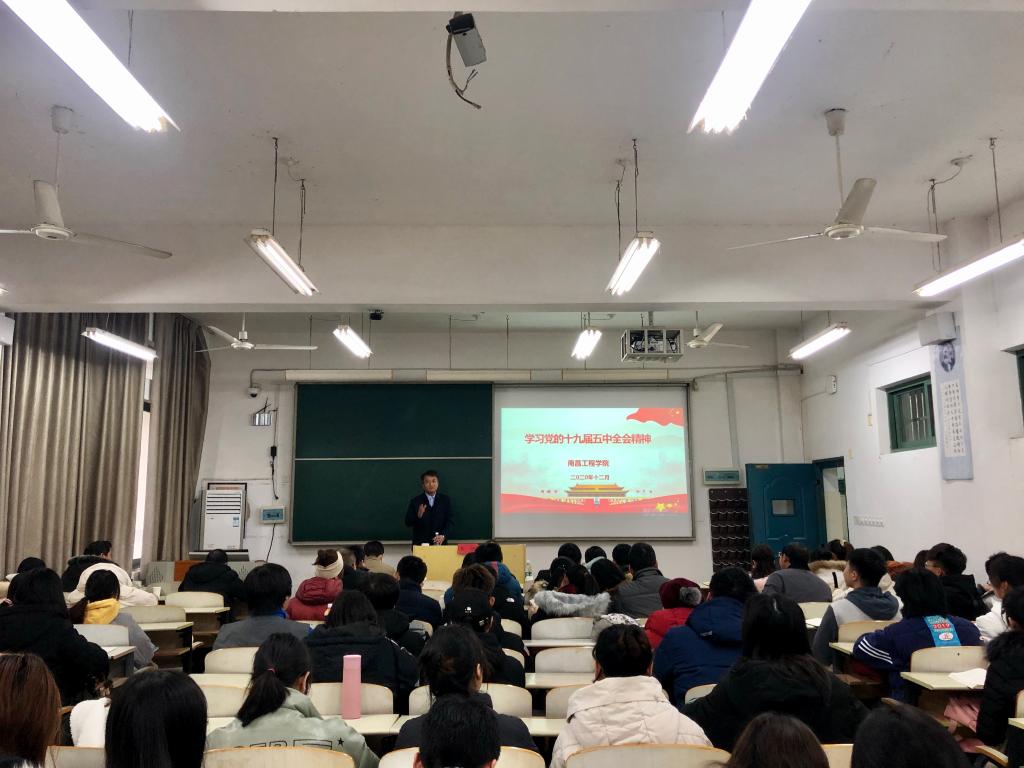 12月9日,校党委委员、副校长李明深入william威廉中文官网为所联系的师生党员和2019级人力资源管理3班学生宣讲党的十九届五中全会精神。