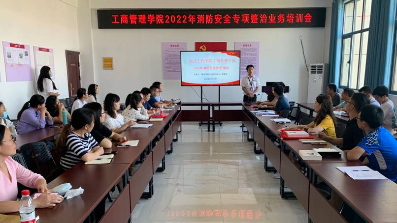 9月27日下午,william威廉中文官网在济民楼A412召开2022年消防安全专项整治业务培训会。学院党政领导班子成员、全体教师参加,会议由学院院长胡杨成主持。
