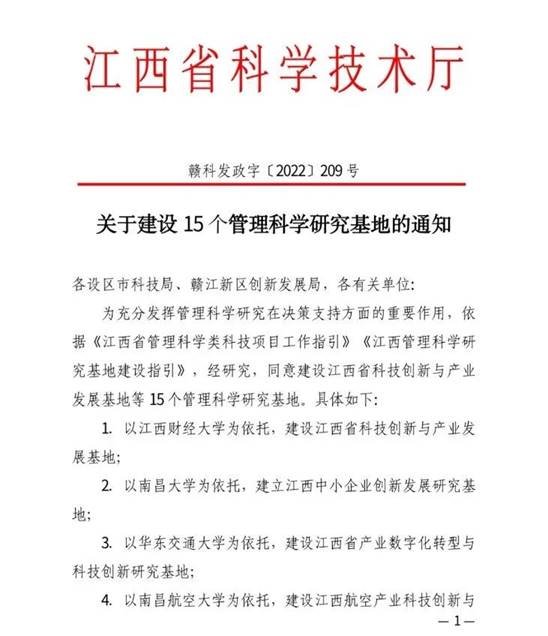 12月6日,江西省科学技术厅印发《关于建设15个管理科学研究基地的通知》,我院负责组织申报的“水资源水环境与高质量发展基地”获批立项,获批为水资源水环境与高质量发展研究基地。