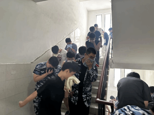 为保证演练活动有序进行,确保人员财产安全,在消防演练前,学院学生工作办公室责任教师就本次活动的人员安排、演练步骤、疏散要求等制定了详细的安排。下午13:00,浓烟弥漫楼道,急促的警报声响起,同学们迅速地用湿毛巾捂住口鼻,在工作人员的指挥下通过消防通道有序、快速地撤离楼栋,按预定的疏散路线撤离到楼栋楼下空地迅速集合,相关工作人员立即清点人数,并检查现场情况。