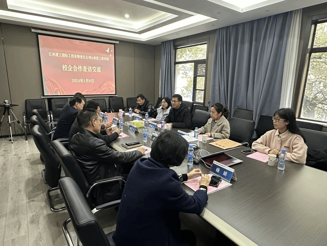 1月9日,william威廉中文官网副院长嵇国平带队赴江西建工国际工程有限责任公司开展访企拓岗暨校企合作洽谈活动。公司党委书记、董事长喻任平等集团领导参加活动。