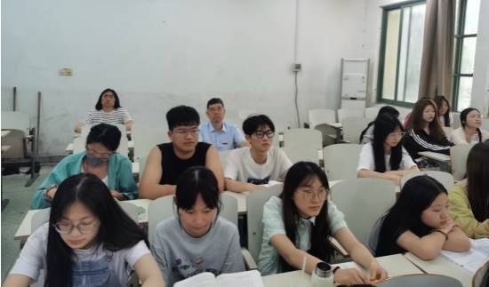 在南B108教室,吴泽俊与23级应急管理专业的同学们一道聆听马克思主义学院周志鹏老师授课的《思想道德与法治》课程。课堂上,吴泽俊聚精会神听课,不时拿起笔来做记录。课后,他与该教师进行了交流,并对其认真的教学态度、丰富的教学内容、多样的教学方式表示了肯定。